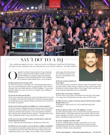 I pride myself on courtesy, respect and professionalism. My goal is to make sure the client(s) have the best experience with music entertainment as I possibly can. I want to earn the respect of the client(s) as being a DJ they can call or refer whenever music is needed. I promise you will not be unsatisfied and/or regret me as your DJ. The saying "You get what you pay for" is a great quote for me because anyone can play music through a speaker. The quality of equipment, premium sound, look and entertainment will be well seen with me!